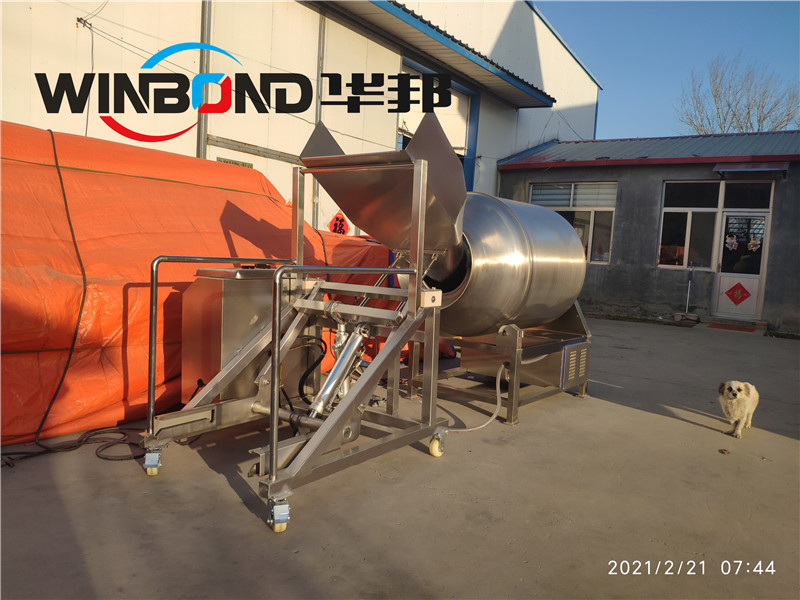 雞肉真空滾揉機(jī)gr-1000l適用于雞肉、雞柳、骨肉相連、整雞整鴨以及蔬菜的真空腌制入味。雞肉真空滾揉機(jī)主要作用是經(jīng)過(guò)鹽水注射機(jī)注射的雞肉或預(yù)腌過(guò)的肉類放在滾揉機(jī)中 ,經(jīng)雞肉真空滾揉機(jī)gr-1000l滾筒慢速柔和的翻滾,使雞肉得到均勻的擠壓、按摩,加速肉塊中鹽溶性蛋白的釋放及同時(shí)能使腌料與肉體蛋白質(zhì)互為溶合,使肉質(zhì)變嫩、增加肉塊的保水性、口感好、顏色及切片紋理美觀、出品率高的目的。