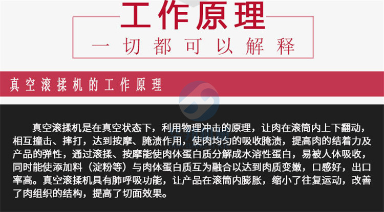 設(shè)備整機(jī)采用304不銹鋼制造,結(jié)構(gòu)緊湊,滾筒兩端均采用旋壓式封帽結(jié)構(gòu),增加滾筒內(nèi)的摔打空間,使?jié)L揉產(chǎn)品的效果均勻,噪音小,性能可靠,操作簡(jiǎn)便,使用效率更高。具有變頻技術(shù)功能,機(jī)器使用安全,方便節(jié)能。