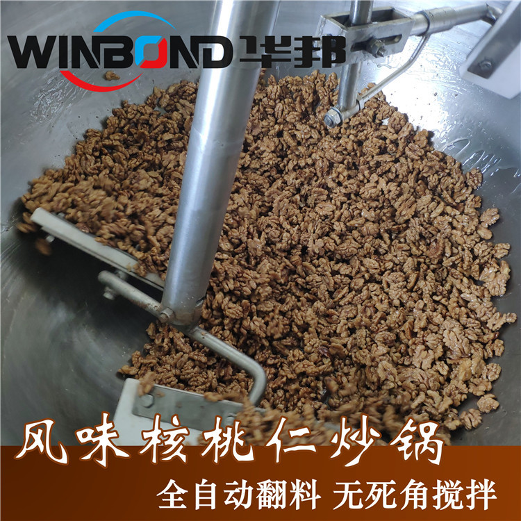 為了能夠使風(fēng)味核桃口味更佳,華邦機(jī)械全自動(dòng)炒鍋受熱均勻,攪拌均勻:
