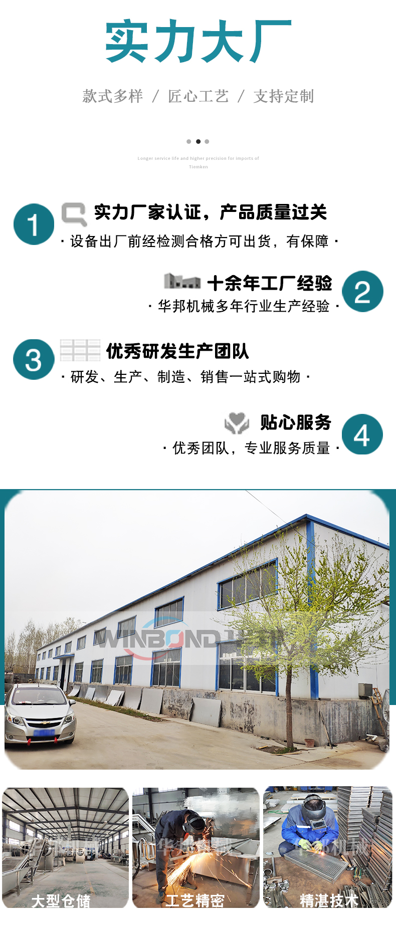 以匠心致初心,秉承著責(zé)任與使命,華邦機(jī)械恪守“信譽(yù)是根本,質(zhì)量是生命,服務(wù)是靈魂”的經(jīng)營理念,以誠實(shí)、守信、穩(wěn)健態(tài)度,創(chuàng)新產(chǎn)品研發(fā),嚴(yán)把質(zhì)量關(guān)口,用一顆真誠、感恩之心對待每一位客戶。
