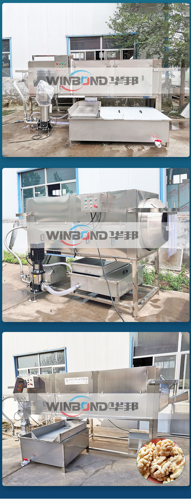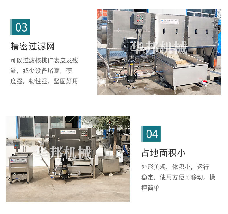 諸城華邦機(jī)械精心研究了并研發(fā)了核桃仁物理去衣技術(shù)和生產(chǎn)設(shè)備,物理脫皮技術(shù)且設(shè)備可以去掉不同品種核桃的技術(shù),采用純物理清水去皮,完整率99%以上,大幅度提高生產(chǎn)效率